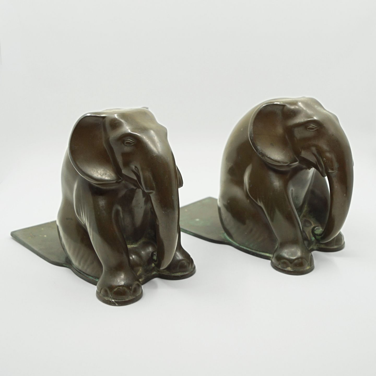 Just Andersen; Par elefant bogstøtter i diskometal, model 165