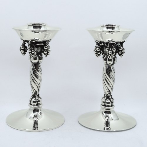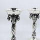 Georg Jensen; Par lysestager i sterlingsølv, prydet med druer.