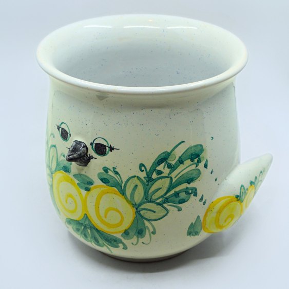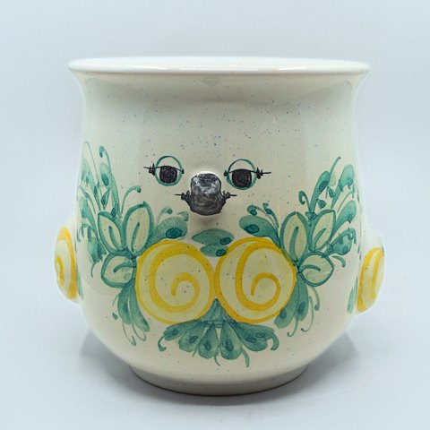 Bjørn Wiinblad; Multi-coloured flower pot with bird motif, V 67