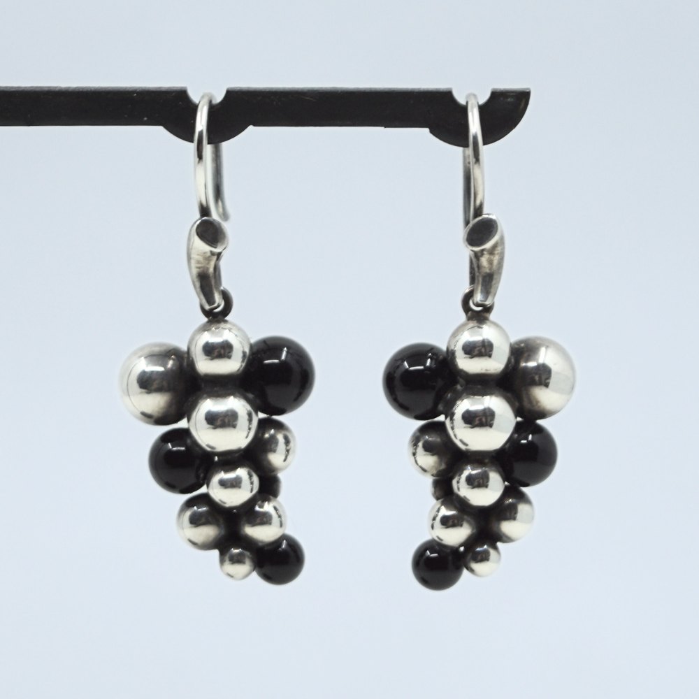 Georg Jensen; Par Moonlight Grapes øreringe i sterlingsølv med onyx