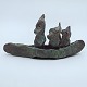 Carl-Henning Pedersen patineret bronze skulptur med tre figurer i båd. Nr. 16/50. Signeret under bunden "CPH 1994".