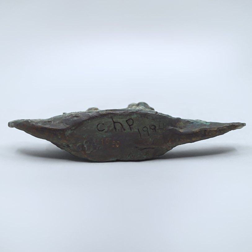 Carl-Henning Pedersen patinated bronze sculpture with three figures in a boat. No. 16/50. Signed below the bottom "CPH 1994".