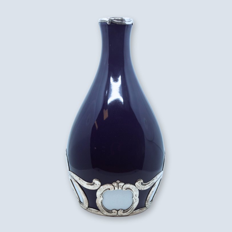 Bing & Grøndahl; An art nouveau vase of porcelain with silver #147