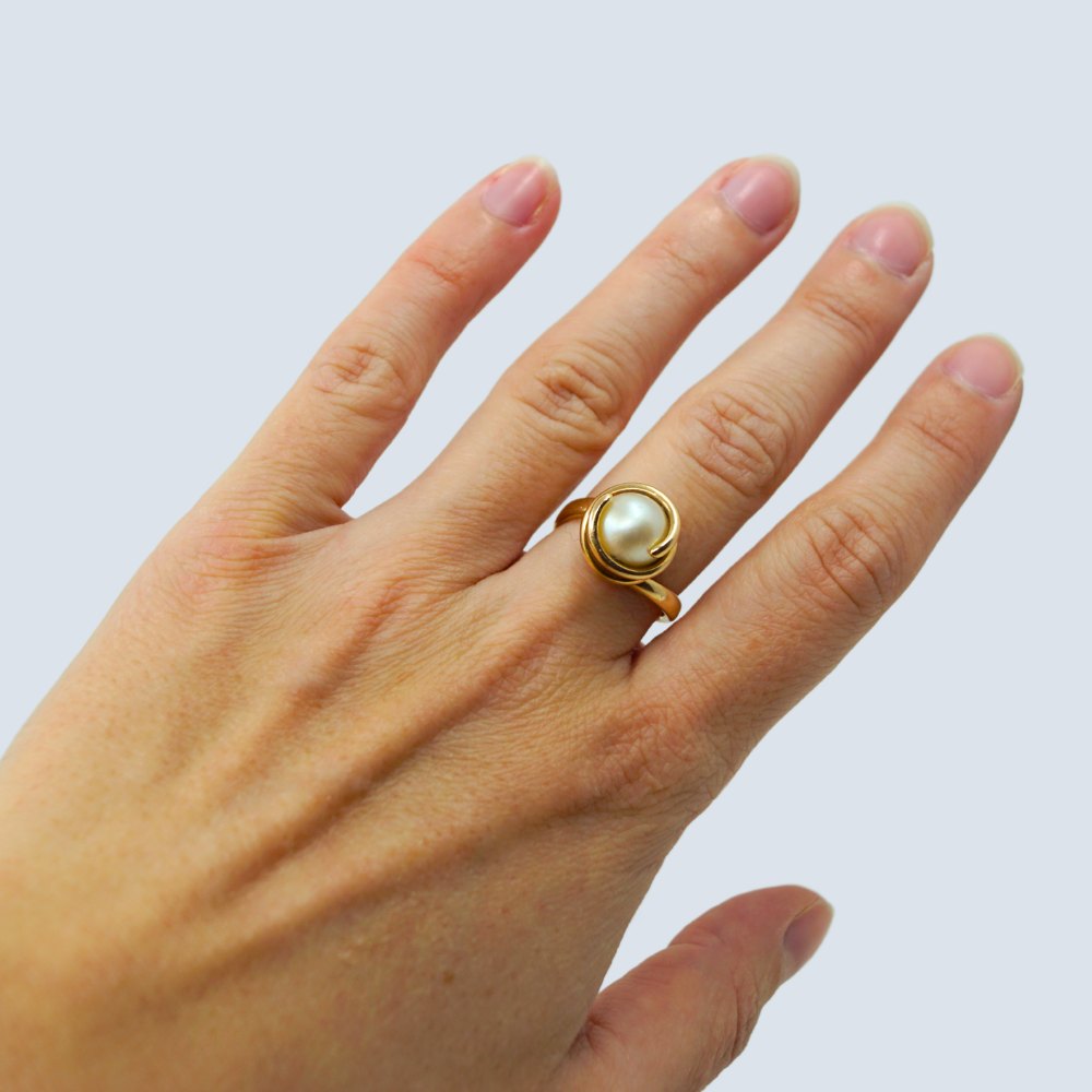 Jens Asby; Ring of 14k gold, set with a large pearl.