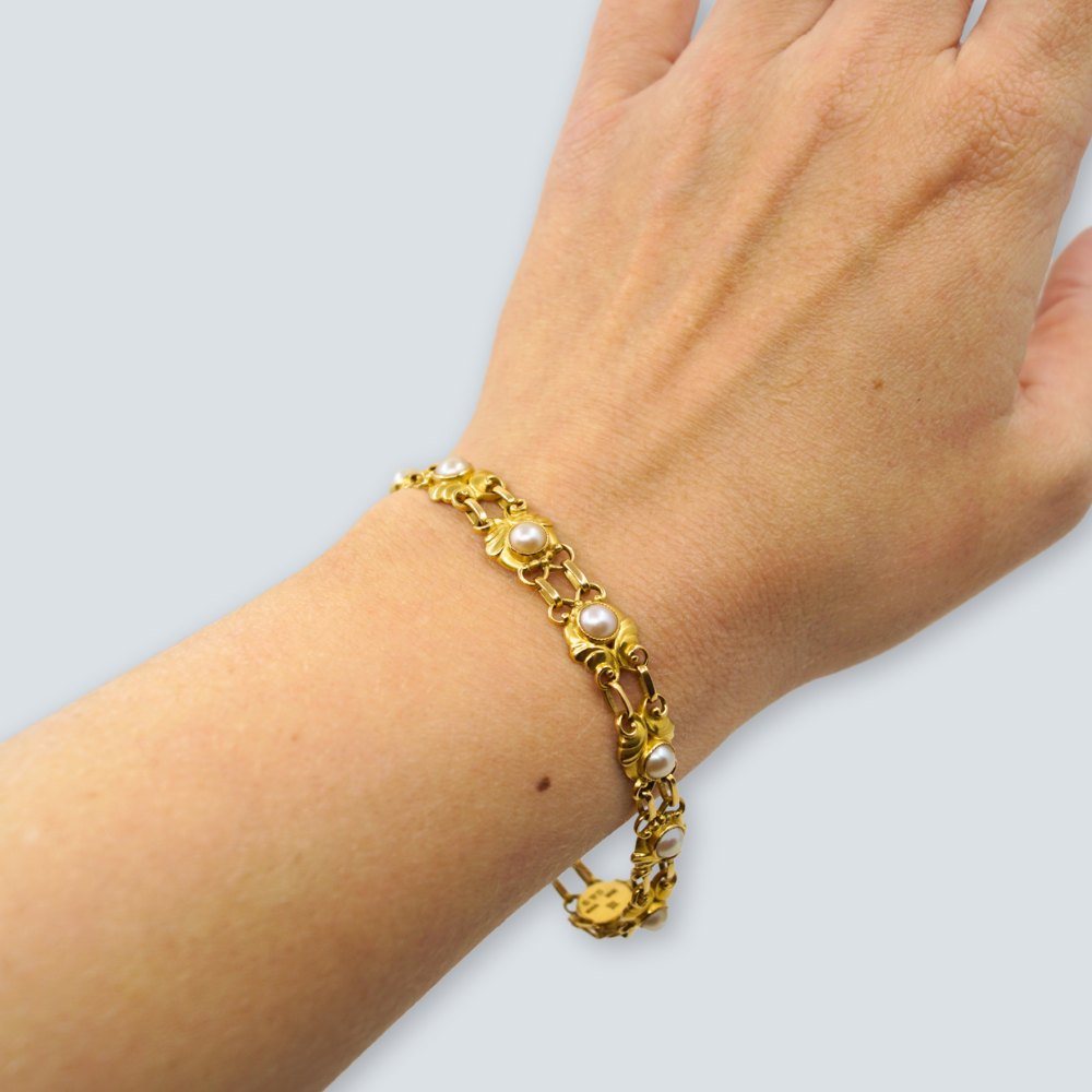 Early Georg Jensen bracelet made of 18k gold set with pearls.