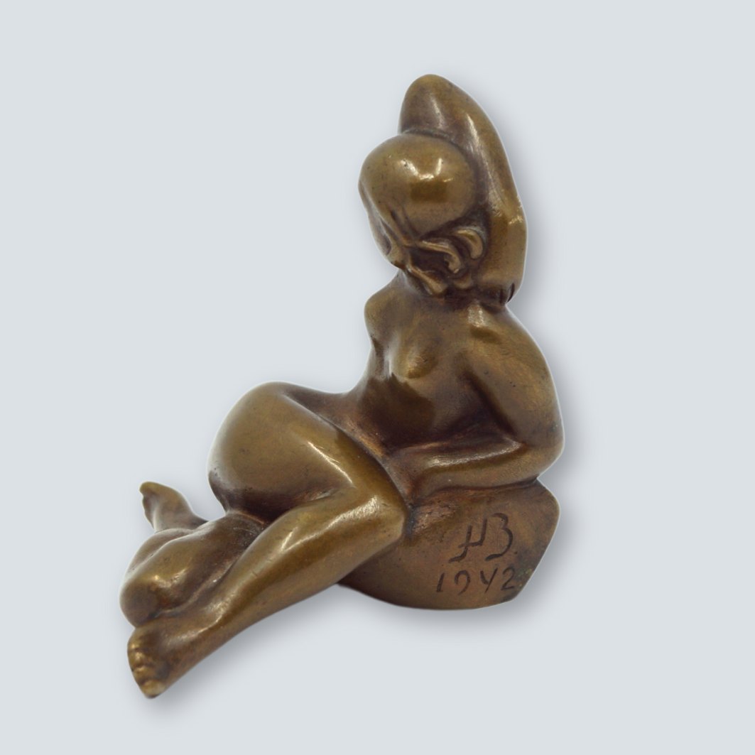 Jens Jacob Bregnø figur i bronze forestillende siddende kvinde.