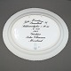 Dekoreret i farver og guld med blomster. L. 25 cm. B. 20 cm. Royal Copenhagen, Danmark. Fremstår med gave skrivelse på bagsiden af fadet (se foto).