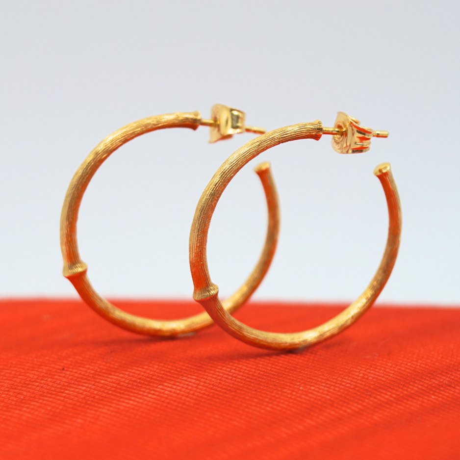 Charlotte Lynggaard for Ole Lynggaard; Nature kreoler i 18 kt. guld med satineret overflade. Nature øreringe str. Large, diameter 30 mm.