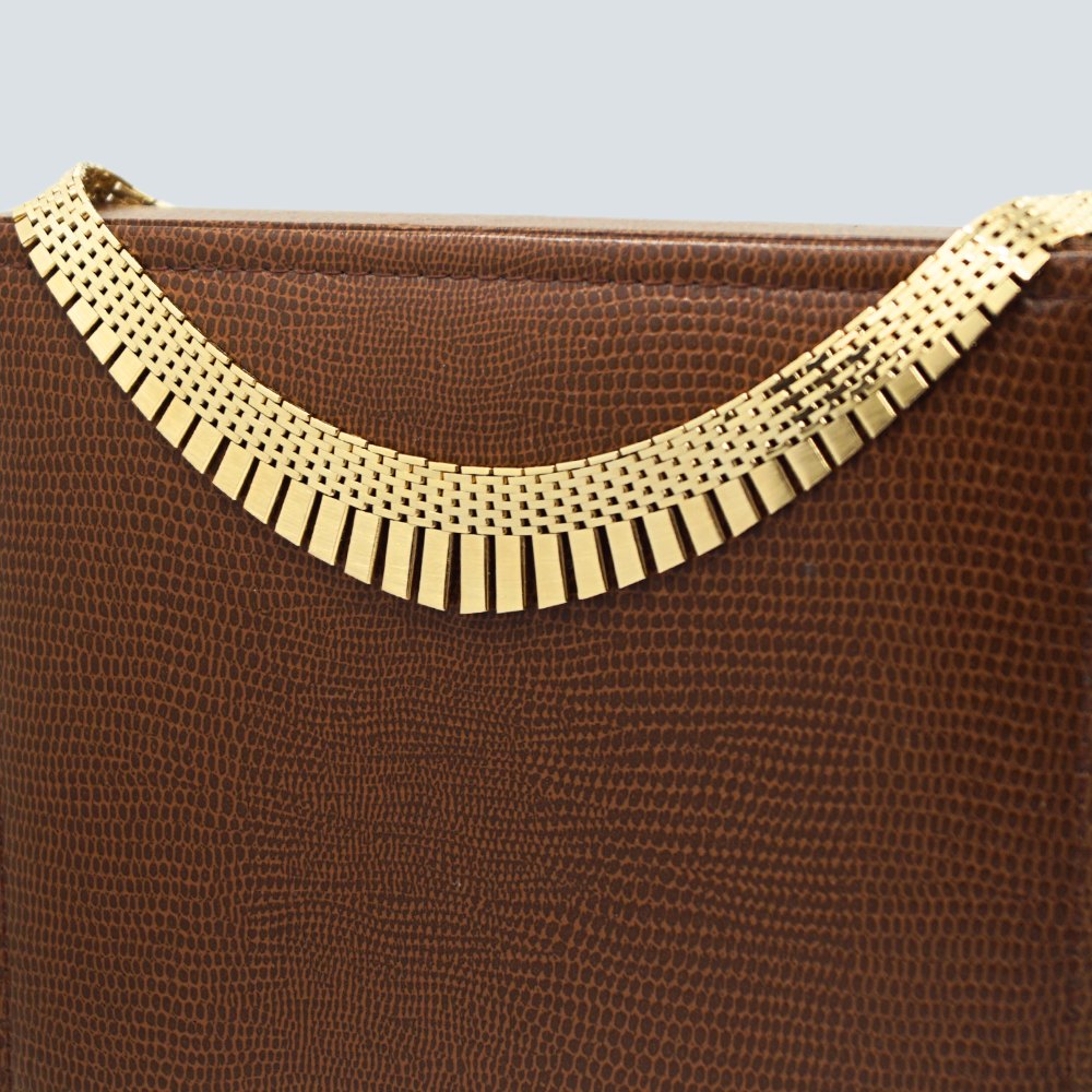 Murstenshalskæde med 9 rækker i forløb af 14 kt. guld. Monteret med kasselås samt to sikkerhedslåse. L. 40 cm. Stemplet "Am.H. 585". Dansk guld smykke.