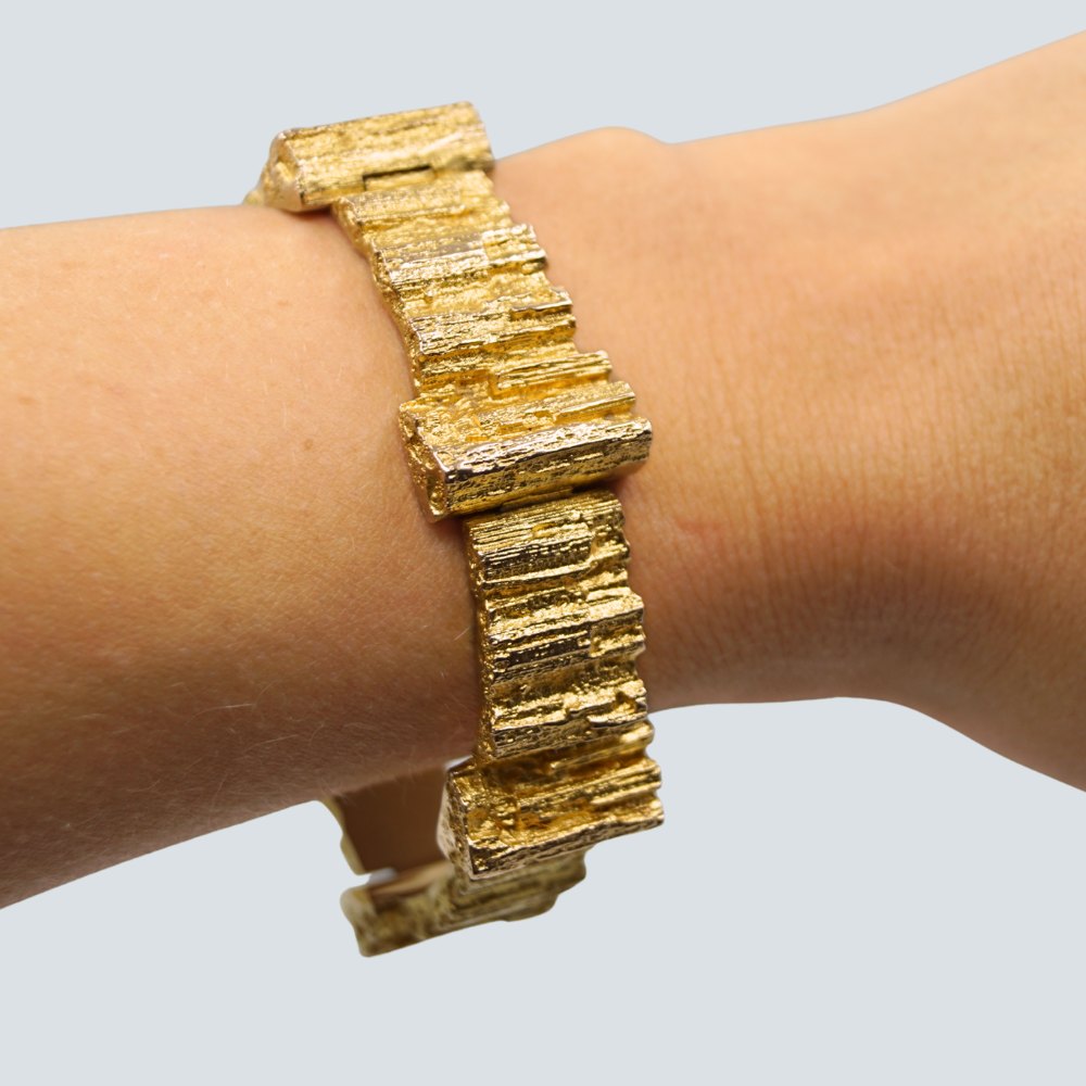 Björn Weckström for Lapponia; Leddelt armbånd af seks led i 14 kt. guld. Designet af Björn Weckström omkring 1970. L. 18 cm. b. 1,3-1,8 cm. Monteret med kasselås og sikkerhedslås. Stemplet "585 Finland Bjorn Lapponia"