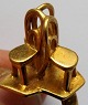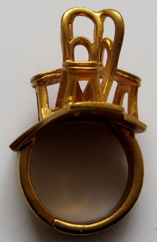 Georg Jensen gilded ring in a VERY modern design. Interesting ring, motif is 3 chairs. In good condition. The ring size can be adjusted. Measures 3,6cm and the finger part measures 1,6cm and can be expanded.