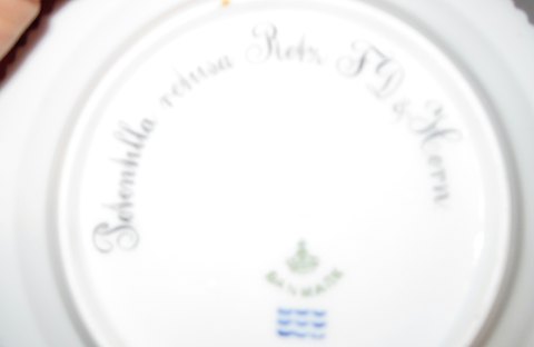Kgl. Porcelæn Flora Danica Side Plate No 3552 (2). Er meget tidlig fra 1893-1900. Måler 14cm og standen er ikke perfekt, har reparation klokken 7. Latinsk navn: "Potentilla retusa Retz F.D & Horn." Er lavet mellem 1893 og 1900. Nyt nummer 615.