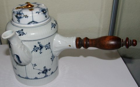 Kgl. Porcelæn Musselmalet Chocolade Kande med Stjert fra ca. 1780. Måler 17,5cm høj og 27cm bred. I hel og fin stand. Hvilket er meget sjældent at se en uden skår. Royal Copenhagen.