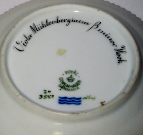 Kgl. Porcelæn Flora Danica Tallerken No 3552. Måler 14,3cm og er i god stand. Latinsk navn "Viola Muhlenbergiana Beta Minor". Royal Copenhagen