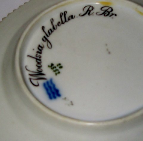 Kgl. Porcelæn Flora Danica Tallerken No 3552. Måler 14,3cm og er i god stand. Latinsk navn "Woodsia glabella R. Br. Hook"