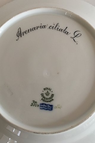 Kgl. Porcelæn Flora Danica Frokosttallerken No 3550. Måler 22cm og er i god stand. Latinsk navn "Arenaria Ciliata L." Royal Copenhagen.