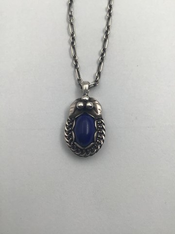 Georg Jensen Sterling Silver Annual Pendent 1992 with Lapis Lazuli Measures 2.8 cm (1.10 inch) Weight 4.9 gr(0.17 oz) Chain 46 cm (18.10 inch)