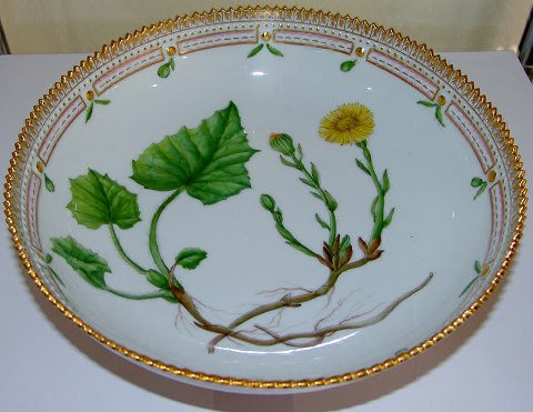 Kgl. Porcelæn Flora Danica Skål No 3504. Latinsk navn "Tussilago Farfara L. I god stand. Er mærket som en anden sortering, men er ikke privat malet. Måler 23cm. Royal Copenhagen