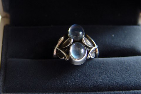 Georg Jensen Sterling Sølv ring med Månesten No 48. Post 1945 stempler. Fremstår i flot stand.