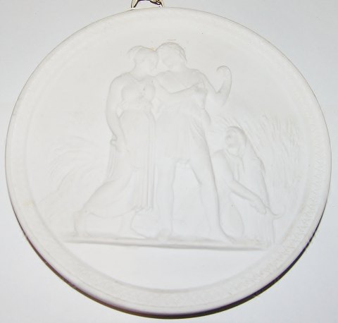 Royal Copenhagen Bisque Plate The age of life-The seasons of the year. Ungdom og Sommer No 117. Copy by Christian Christensen from 1842-43 after Thorvaldsens original from Rom 1836. Measures 13,7cm