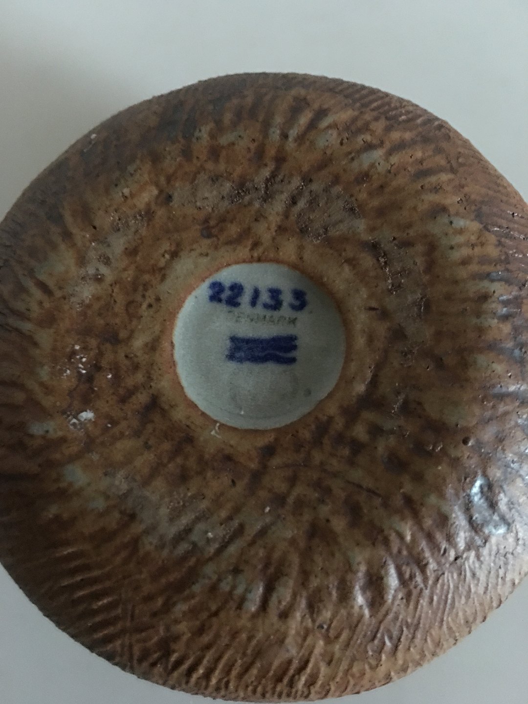 Royal Copenhagen Melike Ababiyanik miniature vases. Marked with 3 waves, Denmark, 22133 and M. incised. Measures 3 1/8" dia. 1 1/2" high. In perfect condition