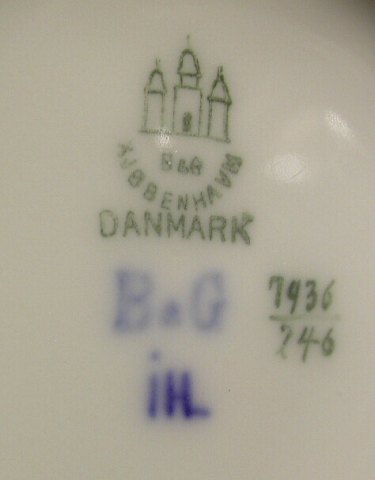 Vase in porcelain from B&G 1915-1947. Decorated with waterlilies and the silent water. Signed IHL. Factory first. 23 cm high.