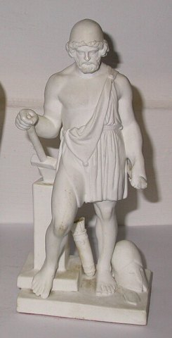 Figur af Vulcan. Bertel Thorvaldsen for Royal Copenhagen. Fabriksmærket på soklen. Det yderste af tangen i venstre hånd er knækket af. Produceret ca. 1880-1900. 17 cm høj.