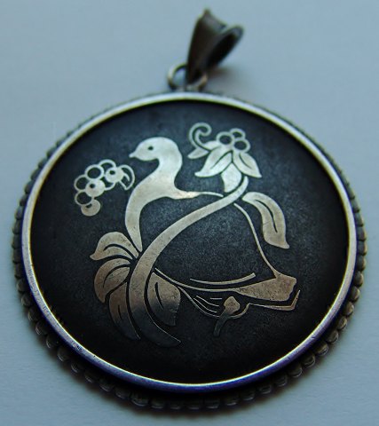 Georg Jensen Iron and Silver pendent with bird motif No 3014. Måler 4,1cm and is in good condition. Designed by Harald Nielsen.