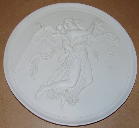 Royal Copenhagen Bisque Plate Day No 86. Copy from 1840 after Thorvaldsens original from Rom 1815. Measures 26cm. Marked as a second.