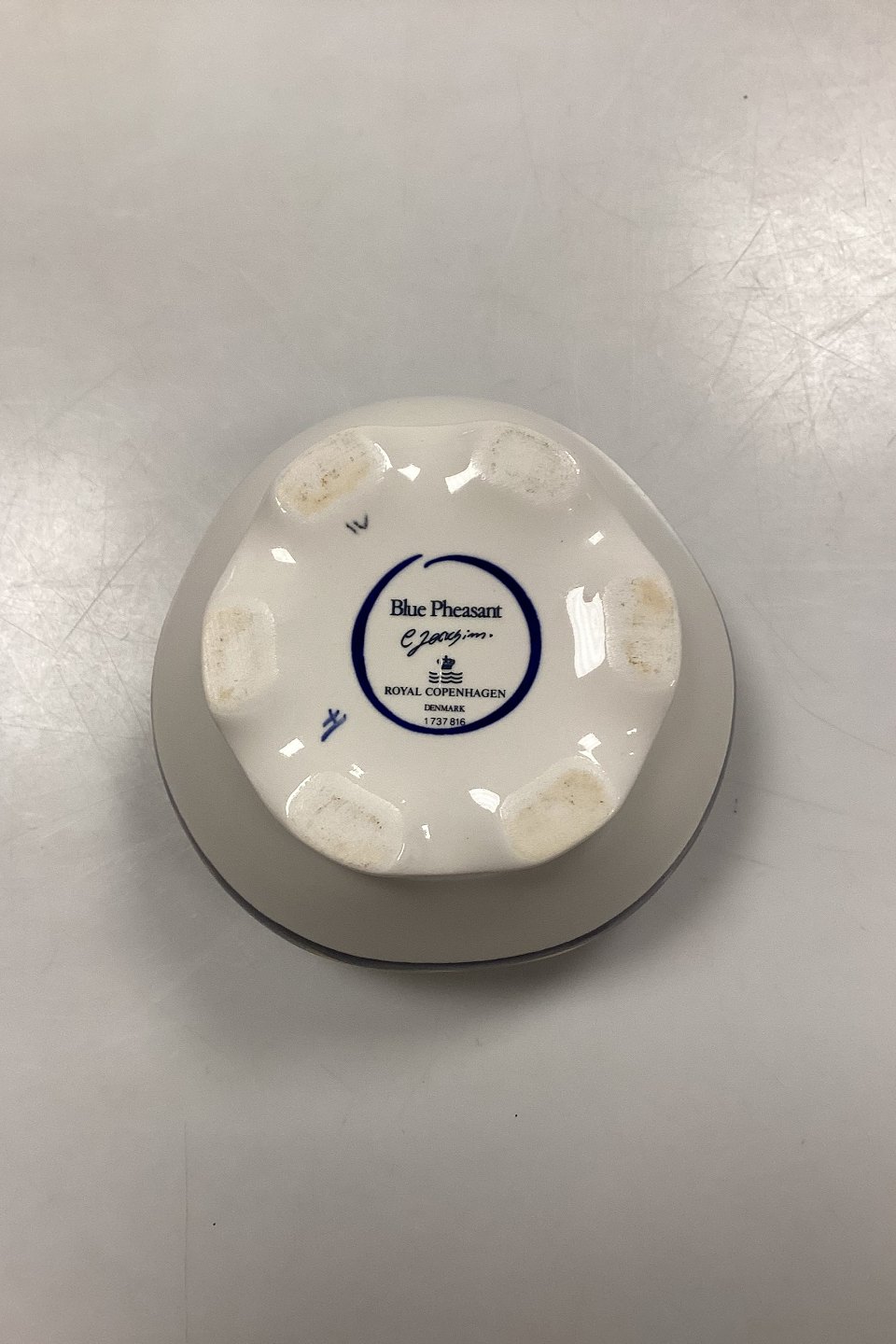 Royal Copenhagen Blue Pheasant Triangular Bowl No. 816. Measures 11 cm x 8 cm / 4.33 in. x 3.15 in. and is in good condition.