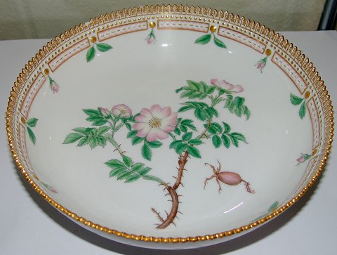 Royal Copenhagen Flora Danica Salad Bowl No 3504. Measures 22,3cm. Latin name "Rosa rubiginosa L.". Has to chips, but otherwise in good condition.