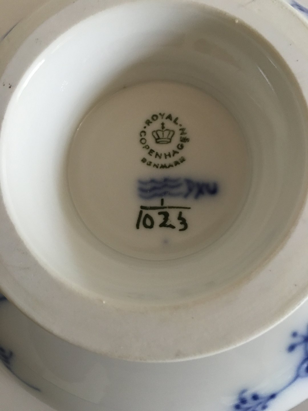 Royal Copenhagen Musselmalet Helblonde Skål på fod nr. 1023. Måler 17,5cm dia og 6cm høj. Er i god stand.