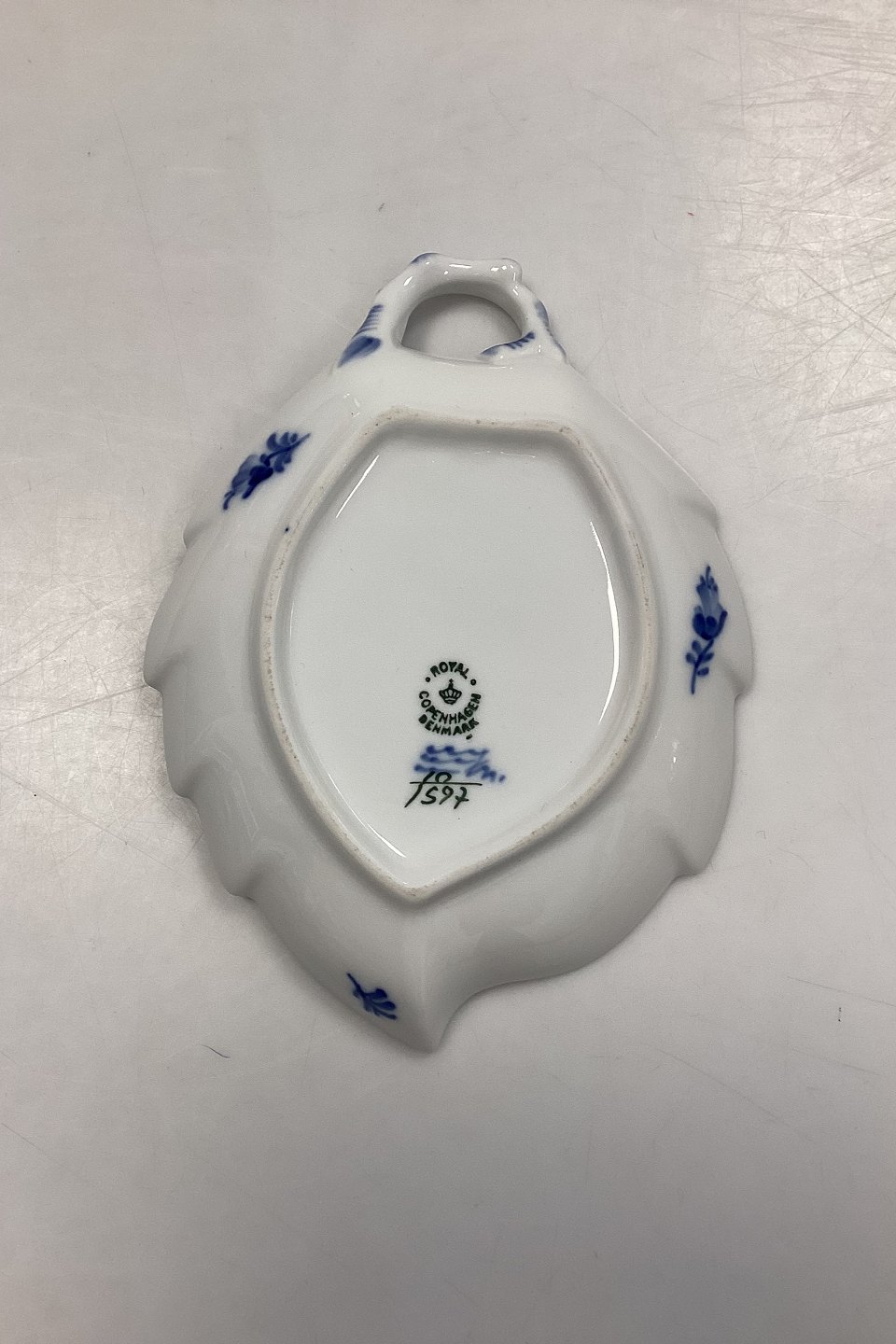 Royal Copenhagen Blå Blomst Svejfet Bladformet Skål No. 1597. Måler 18 cm og er i god stand.