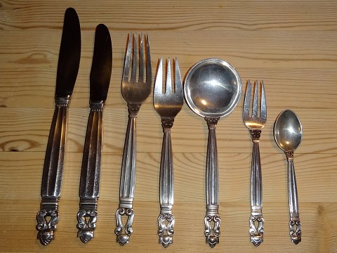 Georg Jensen Acorn Sterling silver Flatware set for 12 persons with serving pieces 92 pieces total