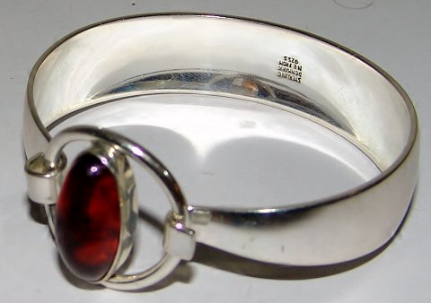 N.E. From Armbånd i Sterling Sølv med Rav. Måler 5,5cm og er i god stand.