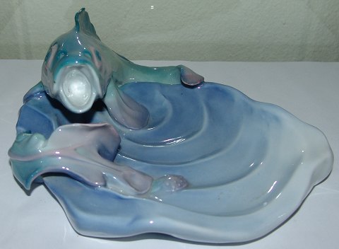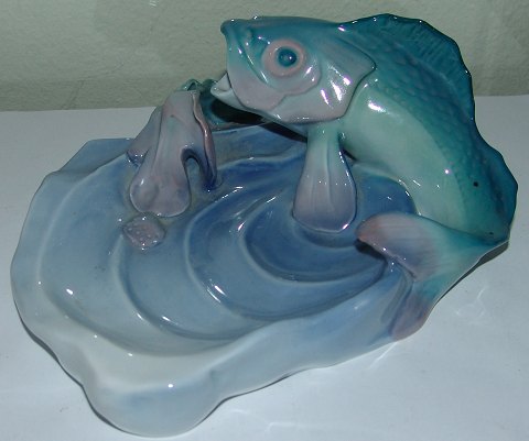 Rorstrand Art Nouveau dish with fish and seaweed. Measures 21cm and is in good condition.