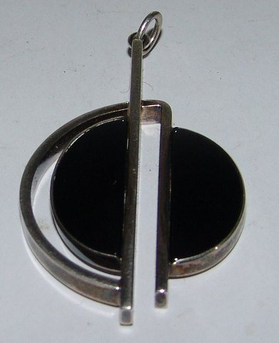 N.E. From Sterling Silver Pendent with black stone. Measures 6,3cm, weighs 22,5g / 0,79oz and is in good condition.