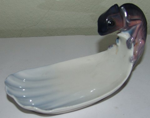 Rørstrand Art Nouveau Skål med firben. Måler 16,5cm og er i god stand. Har lidt fejl i glasuren forenden af skålen.