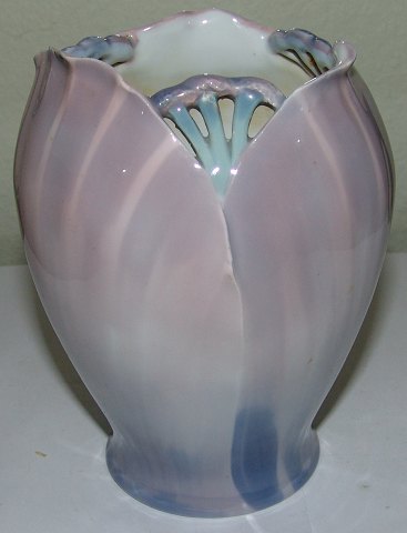 Rørstrand Unika Art Nouveau Vase gennembrugt No 12896 AB. Måler 14,5cm og er i god stand. Men har et little afslag på bundkantet og mini afslag på kanten.