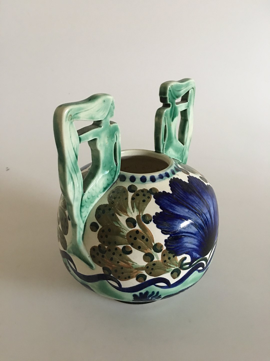 Aluminia Royal Copenhagen Havfrue Vase med blomster og fisk No 414/331 19. I perfekt stand og måler 18,5cm.