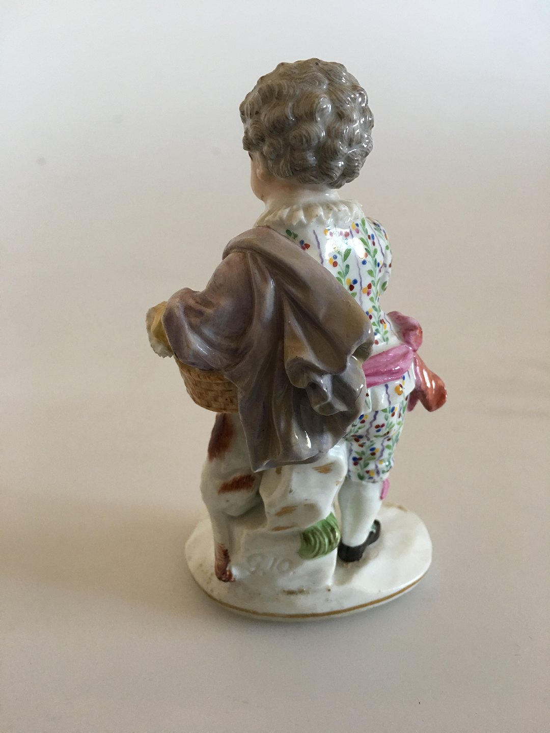 Meissen Figurine Boy with Dog. Measures 11,3cm. Boys arm and dogs legs has a repair.