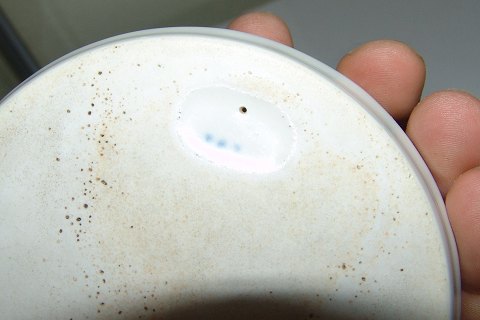 Bing & Grondahl Art Nouveau Ashtray with Whaleross. Measures 12cm. Difficult to read the inscription, but something with Rudolf Jensen 1899 24 Aril.... The piece has a burn mistake.