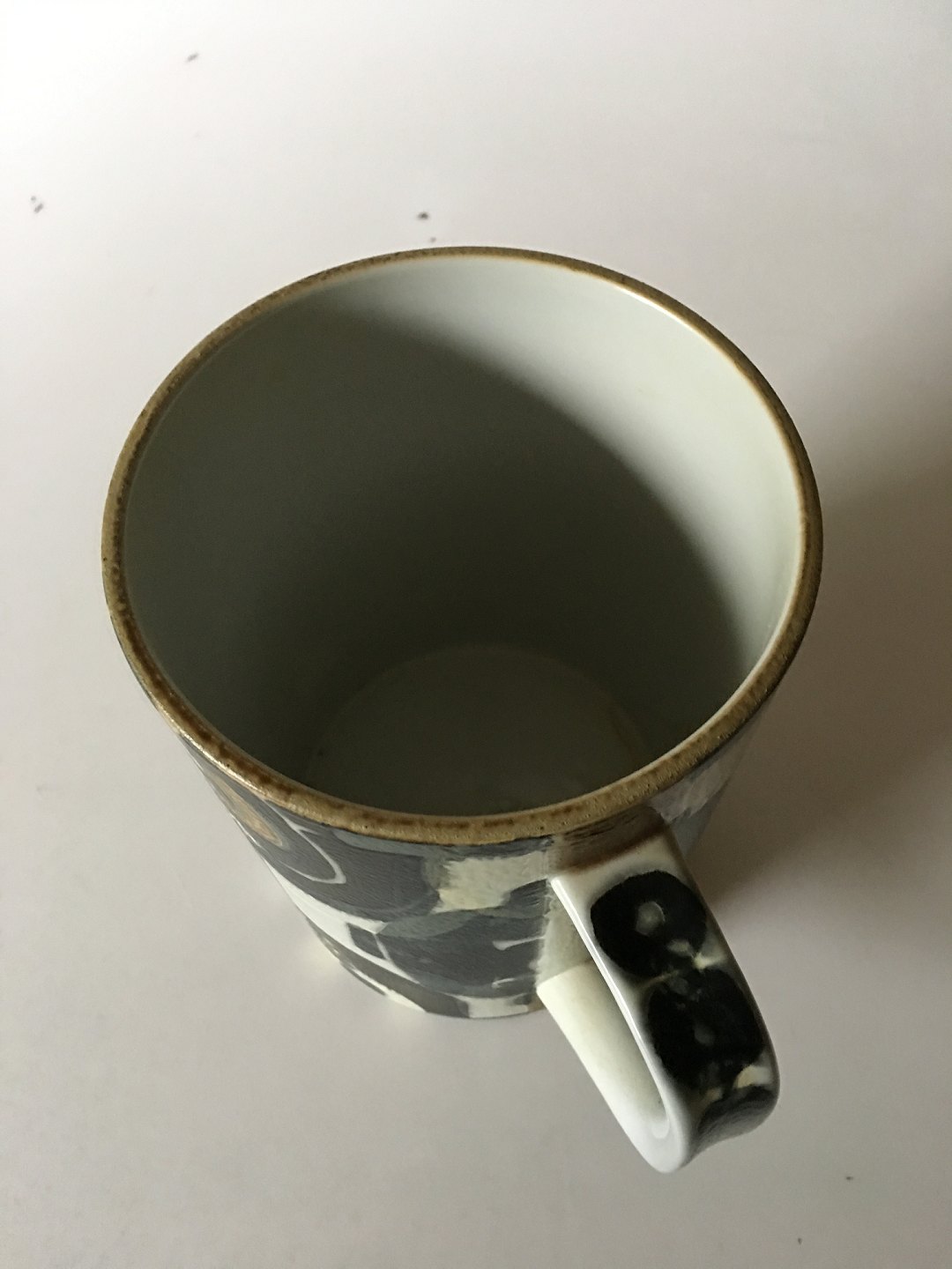 Royal Copenhagen Large Baca Earthenware Mug No. 810/3168. Measures 19,2 cm x 14,5 cm and is in good condition. Designed by Johanne Gerber.
