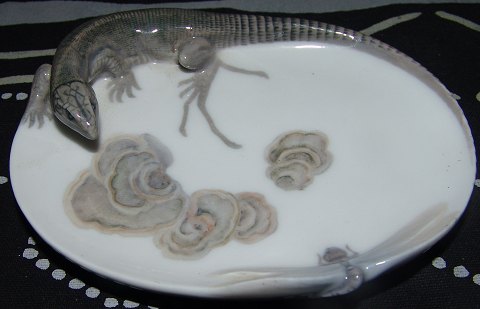 Royal Copenhagen Art nouveau Firben og guldsmed Skål No 552/287. Måler 13cm og er i god stand.
