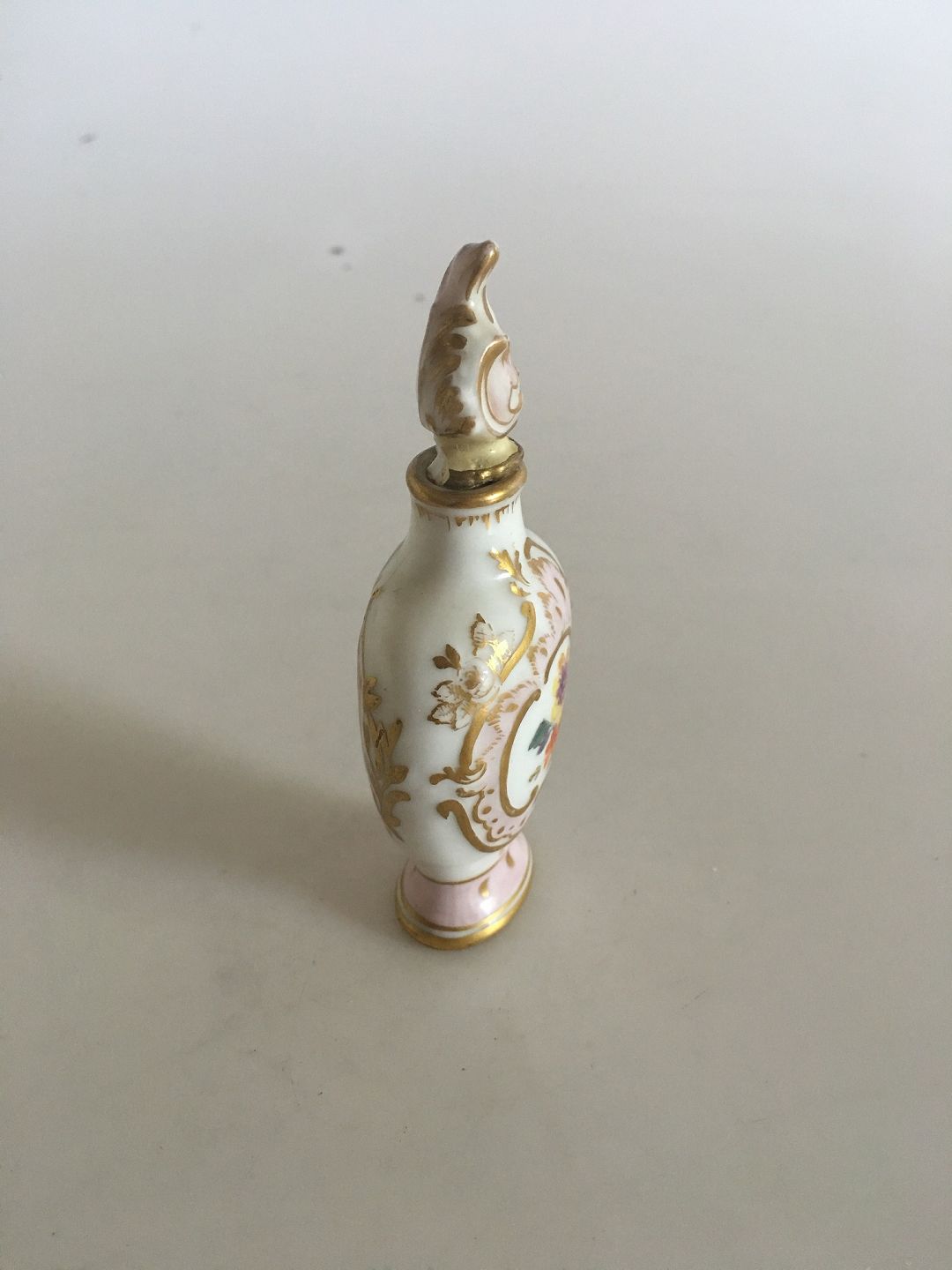 Royal Copenhagen Saksisk Blomst Flakon med låg ca. 1860. Måler 10 cm. Låg med afslag og reparation.
