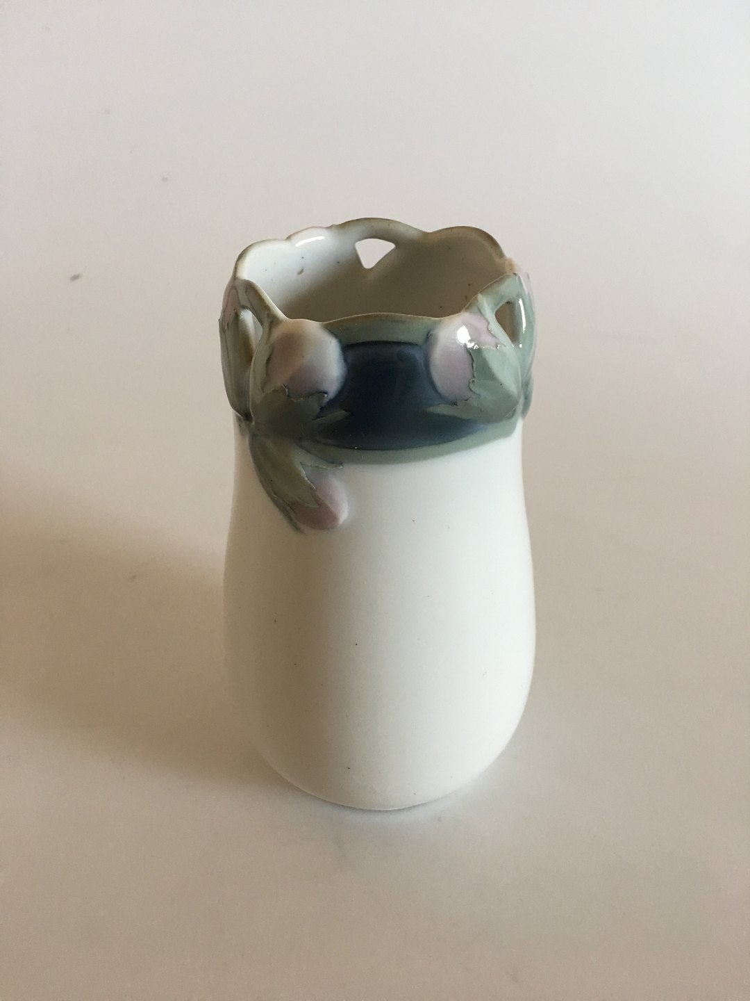Rørstrand Art Nouveau Vase af Karl Lundstrøm. Måler 14,5cm og er i god stand, men har et lille skår på top kanten.