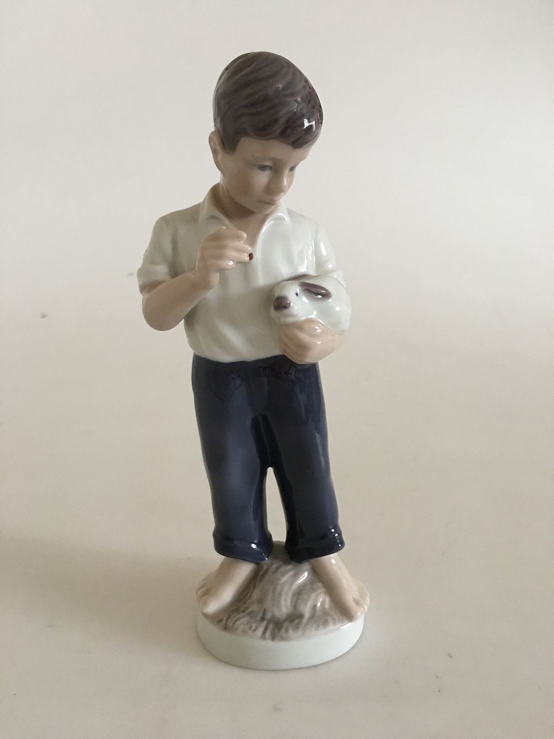Lyngby Figur Dreng med Kanin No 3. Måler 19,5cm og er i perfekt stand.