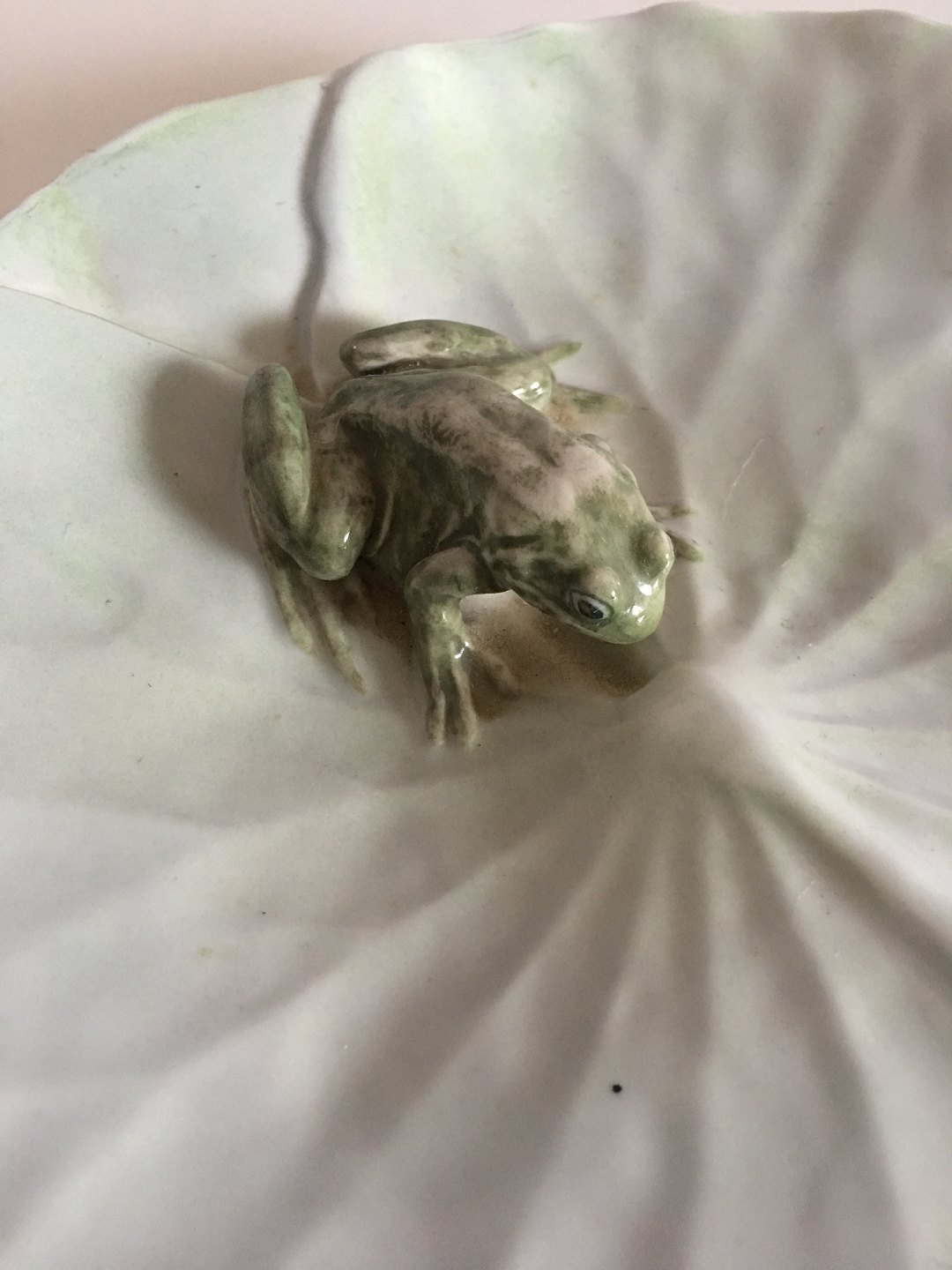 Royal Copenhagen Art Nouveau Frog on Water lilly leaf No 12/5. Measures 26cm / 10 1/4" and is in perfect condition.