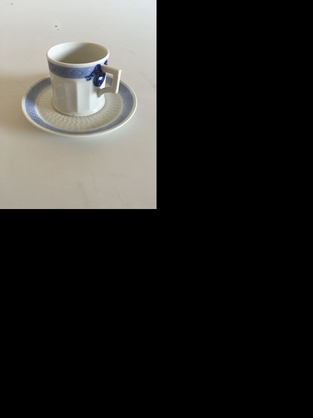 Royal Copenhagen Blue Fan Espresso Cup and Saucer No 11548. Cup measures 5.6 cm x 6 cm (2 13/64" x 2 23/64")