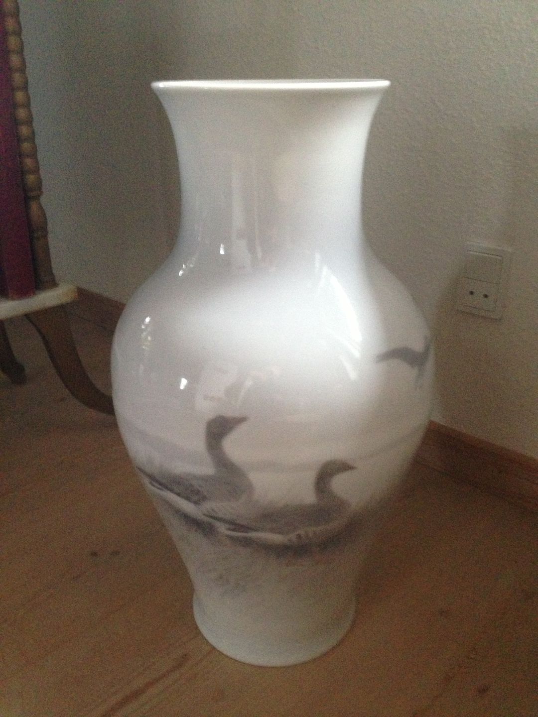 Royal Copenhagen Art Nouveau Unique Vase by Vilhelm Theodor Fischer with Geese from 1927. Measures 53cm high and is in good condition, except from a impact mark on the bottom rim.